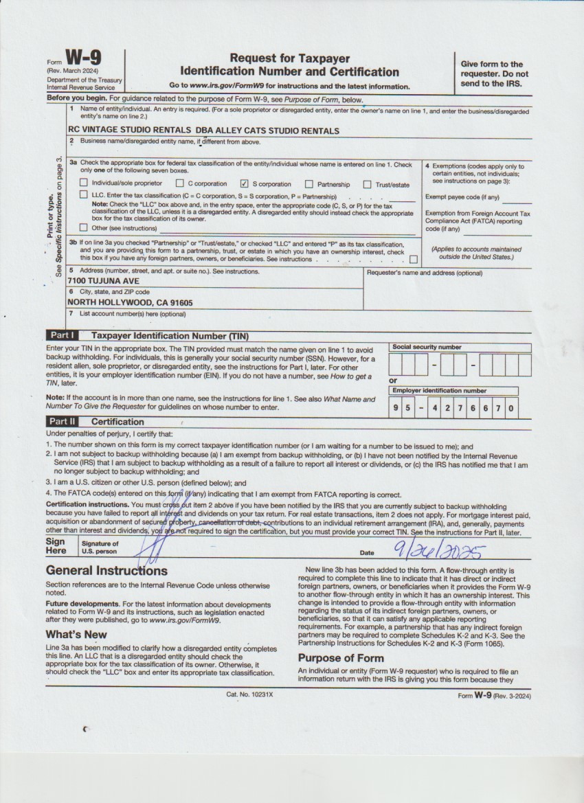 To open a New Account, simply submit your Certificate of Insurance and a Credit Card Authorization Form via email to alleycatsprops@gmail.com. If you cannot email, please fax to: 818.982.9458.